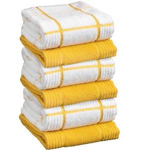 Spectacular in their simplicity T-fal Woven Solid & Check Parquet Kitchen Towels (6-pack) provide top-of-the-line results no matter what the task. These finely crafted kitchen towels feature a parquet design that allows for moisture-wicking and proper airflow that ensures quick-drying and plush 100% cotton construction offers a gentle touch when cleaning more delicate surfaces and objects. Towels are considerably sized measuring 16 in. by 26 in. (40 cm by 66) which allows for convenient double duty as sink-side drying mats for pots pans and other kitchen appliances. T-fal's charming Solid & Check Parquet towels are available in subtle and spirited color options to match your personal taste. Machine washable.