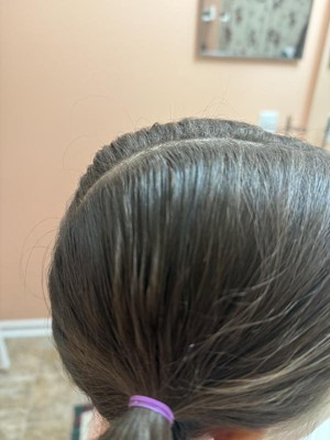 My daughter has fine hair with lots of little baby hairs that naturally stick up as they’re growing. I don’t always want to use hair spray or gel so was excited to try this. Not sure what to expect, but wow, it worked really well! The wand was easy to use and it held the hair down after a few passes almost immediately. I used it after finishing her hair style and want to note, although the wand is great for application, because it is a wand, it did lightly pull at some hair that was secured in the pony tail, and I had to readjust a bit. Not surprisingly as it is a brush with bristles, but wanted to note that. In the photos I’m going to post you’ll see before and after use.