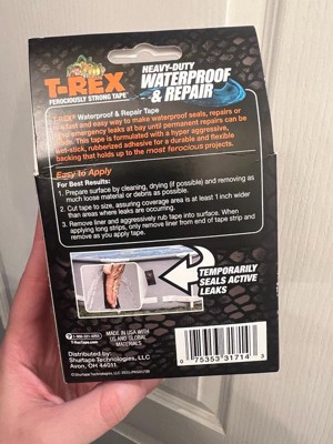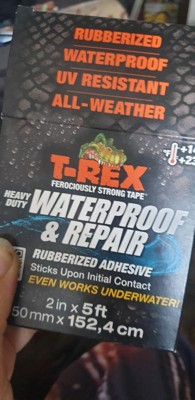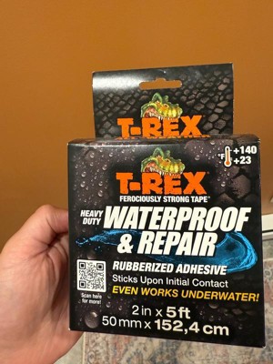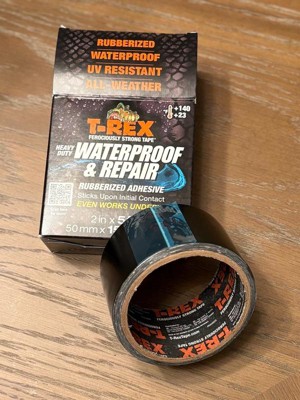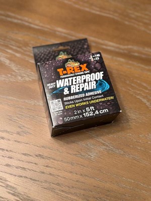 T-Rex Ferociously Strong Waterproof Tape provides tough waterproof adhesion under wet and dry conditions. Built with R-Flex Technology, T-Rex Waterproof Tape can stretch up to 700% of its original length. It's strong enough to be used for general purpose indoor or outdoor fixes that require a waterproof seal, like repairing a rip in an above-ground pool or temporarily stopping a leak in a water pipe. Or, apply it underwater and push it into cracks and rough, dirty surfaces. Formulated to withstand extreme temperatures from -70 degrees F to 200 degrees F, it's UV-resistant formulation won't break down under harsh sunlight. T-Rex Waterproof Tape. Flexibile, ferociously strong, and waterproof like no other.