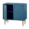 Channel your inner Mid-century style with the need to have the Tabaria Buffet by Lifestorey. A distinctive grooved pattern is etched on the front door panels lending a vintage type of vibe. Ideal for the dining room or kitchen, this buffet provides plenty of storage space, including an adjustable interior shelf making it easy to store linens, dishware, serving pieces and more. Constructed of durable MDF in a striking midnight blue finish, this cabinet is tastefully accented with gold-tone metal handles and legs.