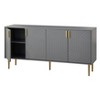 Channel your inner Mid-century style with the need to have Tabaria Sideboard by Lifestorey. A distinctive grooved pattern is etched on the front door panels lending a vintage type of vibe. Ideal for the dining room or kitchen, this spacious sideboard provides plenty of storage space, including adjustable interior shelves making it easy to store linens, dishware, serving pieces and more. Constructed of durable MDF in a neutral gray finish, this cabinet is tastefully accented with gold-tone metal handles and legs.