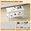This space-saving rectangular coffee table combines modern functionality with farmhouse charm, featuring a dual-level design that maximizes storage in small living spaces. Measuring 31.5"L x 15.4"W x 19"H, its compact footprint fits perfectly in apartments, dorms, or cozy seating areas.