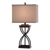 A subtle take on industrial-inspired décor, this table lamp features a black wood finish with brown accents. The rectangular hardback shade is made of beige fabric. The hourglass shape of the base ensures this black and brown lamp will enhance the look of a bedroom, living room, hallway, dining room, or office.