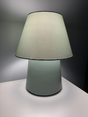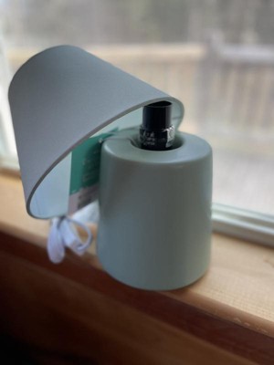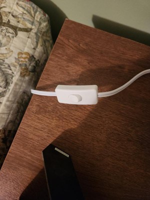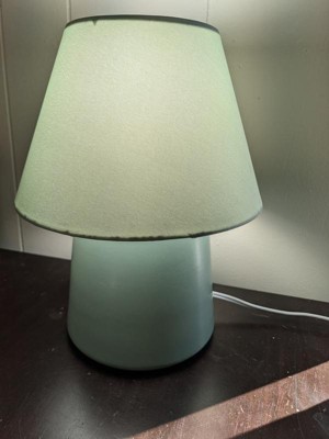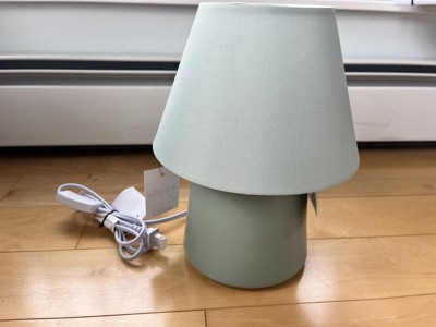 I got this lamp for my toddlers room and its the perfect little size! I love the light sage green color that goes well with the rest of the decor. I also really love the simple and modern design. The lamp turns on with a switch on the cord which ia so convenient and easy to use.
