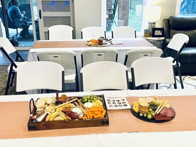 - Disposable table runner makes cleanup easy