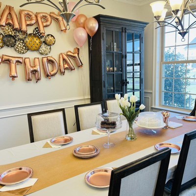 - Rose gold table runner easily dresses up any table