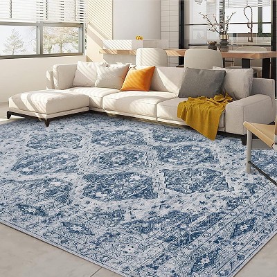 TackView 10' x 13' Washable Area Rug, Modern Floral Non Slip Rugs, Soft Foldable Accent Rugs Carpet for Indoor Living Room Bedroom, Blue & Gray