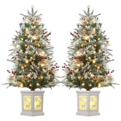 TackView 3FT Artificial Christmas Tree 2 PCS, Xmas Desktop Tree with 78 Warm White 8 Mode Lights for Holiday Decor, Snowflake Base