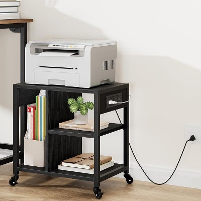 - Consolidate your entire workstation! This spacious 4-tier cart offers a dedicated home for your printer, computer tower, and all your supplies. The integrated power strip with outlets and USB ports powers everything in one central, clutter-free location.