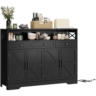 TackView 55" Farmhouse Buffet Cabinet with Glass Doors & Adjustable Shelves, Coffee Bar Station Sideboard Storage Cabinet