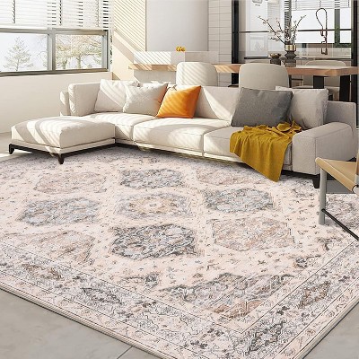 TackView 9x12 Area Rugs for Living Room Bedroom, Large Washable Rug, Vintage Floral Boho Non Slip & Low Pile
