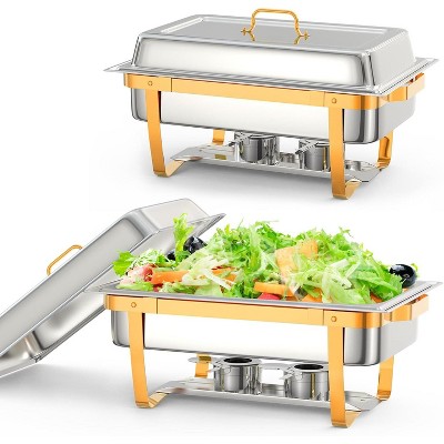 TackView Chafing Dish for Buffet Set, 2 Packs 8 QT Chafers and Buffet Warmers Sets with Folding Frame, Spoon & Tweezer for Parties Banquets, Gold