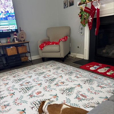 TackView Christmas 2' x 10' Runner Rug Washable, Non Slip Low Pile Christmas Tree & Floral Accent Carpet, for Living Room, Bedroom, Kitchen, Beige