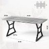 - 【Built to Last】Crafted with premium engineered wood, the tabletop resists stains, and spills while maintaining easy-clean convenience. Sturdy metal legs feature a timeless trapezoid design, reinforced with dual crossbars at each connection point for enhanced stability. This thoughtful engineering ensures sturdy performance both indoors and out—without compromising its enduring farmhouse appeal.