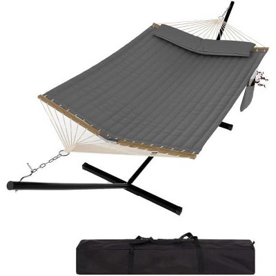 Sink into spacious, shared relaxation. The generously sized hammock provides ample room for two people to lounge side-by-side comfortably, whether you're chatting, reading, or simply enjoying the outdoors together.