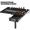 - Move heavy loads with ease thanks to the sturdy stainless steel handle and smooth-rolling casters. The integrated system of drawers and slotted trays ensures your tools stay organized and won't spill during transport.