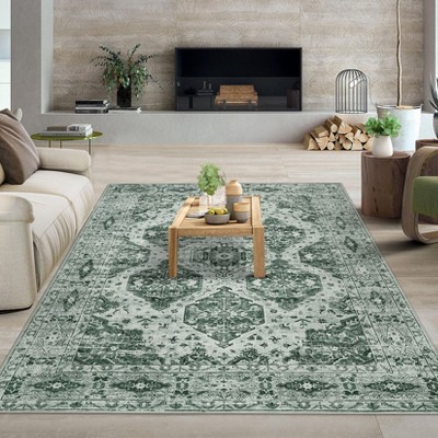 TackView Modern Bordered Runner Rug, Washable Irregular Area Rugs, Non-Slip Carpet for Bedroom Dining Room Home Office