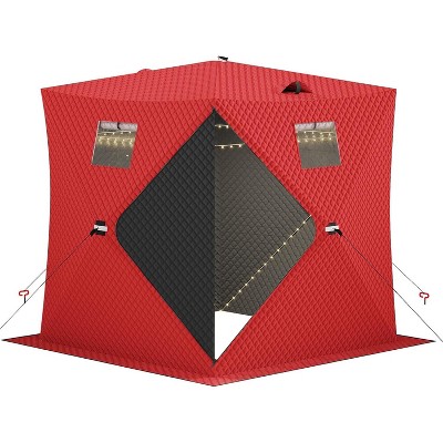 - Instant pop up ice fishing shelter for 2–3 anglers: Hub-frame pop-up design sets up in seconds, making it easy to open, move, and pack away—perfect for fast, efficient ice fishing.