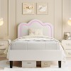 - Upholstered Bed with Bear Headboard: The headboard is padded with high-resilience foam and covered in luxurious velvet for maximum comfort. Its elegant flower shape integrated with LED lights adds chic beauty to your room. The headboard height is adjustable from 44.1" to 46.1" to fit various mattress sizes, recommended for 10''-12'' mattresses.