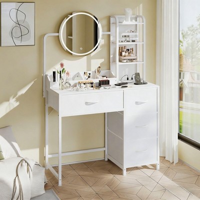 - 【Convenient Power Outlets】This illuminated makeup desk features two AC power outlets, one USB port, and one Type-C port, allowing you to charge your phone, tablet, and styling tools while applying makeup