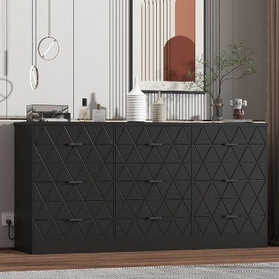 Organize your space with this versatile 9-drawer dresser. Each deep drawer holds 11–22 lbs, perfect for clothing, media, or everyday essentials. The thickened wooden top is waterproof and easy to clean, while the fabric-lined drawers provide stylish storage for CDs, DVDs, game controllers, and more. Built with a sturdy metal frame and an anti-tip kit, this dresser offers safety, durability, and convenience in any room.