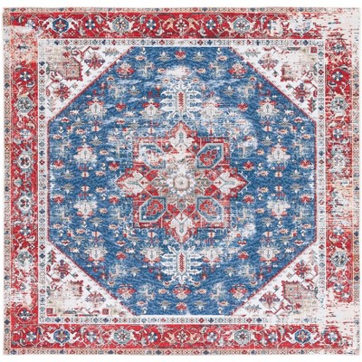Tacoma TAC836 Machine Washable Skid Resistant Stain Resistant Non-Shedding Power Loomed Indoor Accent Rug - Blue/Gold - 4'x4' - Safavieh