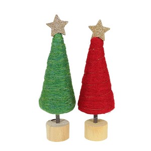 - Tag Red & Green Cotton Candy Trees - Two Wool Trees 10.0 Inch, Wool - Handmade Gold Star G1208183