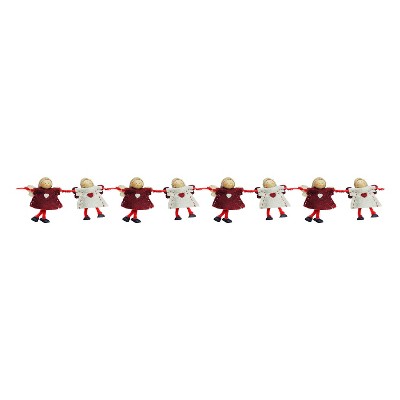 This vertical hanging features 5 red and green triangles, spelling out the word JOY with off-white snowflakes on top and bottom. It's the perfect addition to any festive space.