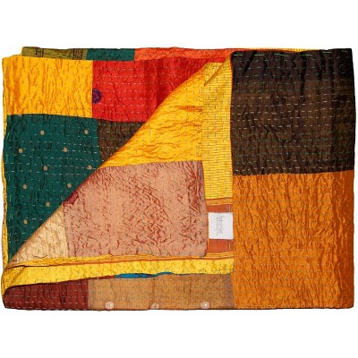 An elegant patchwork of vibrant design with an airy, lightweight feel, the Kantha series is visibly unique. Kantha embroidery is a time-honored artistic technique practiced for centuries by skilled Indian artisans. Each piece is hand-crafted from several layers of cotton or silk held together by a running “kantha” stitch. The luxurious materials, rich colors, vintage artistry and one-of-a-kind beauty of these magnificent throws will elevate the decor of any space. Features: 100% Cotton / Hand crafted / Technique: Quilted / Size: 50x70 / Country of origin: India / Can be used in a variety of ways: as a blanket, table cover, wall hanging, tapestry, beach cover and more / Hand wash cold water / Some variance in size and color may occur due to the one-of-a-kind vintage nature of this product