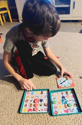 This little Bingo game is a great travel companion, with all parts being magnetic and the storage case being metal. Bonus - the cards are printed onto the case! We've had bingo games before but my kids tend to destroy them - good luck trying that with this Bingo! Magnetic markers and a neat spinner had my 5 year old playing in no time. Works fantastic in the car on road trips.