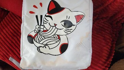 CUSTOM DESIGNED: This fun novelty backpack measures 38cm x 35cm x 22cm, and has been thoughtfully designed to look like a takeaway noodle box, complete with "Thank You" at the top and a fun cat character.