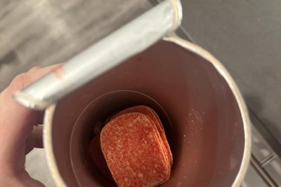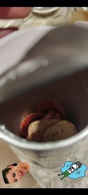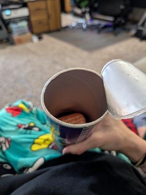 We opened the can when we got home and the foil peel had been already opened and half the chips had been eaten. 😳
