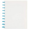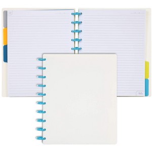 INCLUDES: 100 sheets of lined paper, undated monthly calendar pages, undated yearly calendar pages, 5 tab dividers, 1 clear storage pocket, 1 set of poly covers, 1 set of 1in discs (holds approx. 150 sheets of paper)