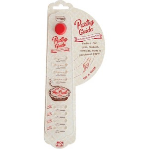 The Pastry Guide will help you make a beautiful pie every time, by ensuring your crust is the right size and a perfect circle. Use for cutting full sized or individual pies, tarts, tortillas, puff pastry, fondant, parchment paper and more! Simply place the red button on the guide in the center of your rolled out dough, find your desired dimension on the guide, place a knife in the measurement notch and draw the knife through the dough...you have a perfect dough circle! The Pastry Guide will help cut circles from 4" to 14" with the fun retro graphics that clearly display measurements for finished pie size and dimensions of cut dough. The tools is made of flexible plastic and silicone; it is BPA-free and we suggest hand washing, but it is ok to clean in the top-rack of dishwasher.
