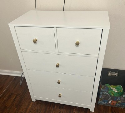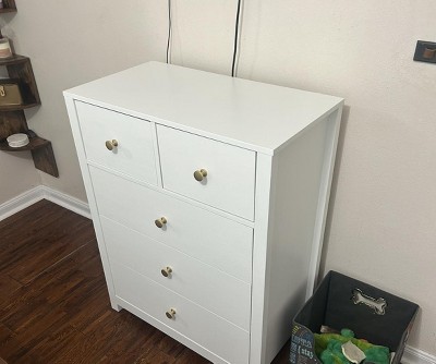 The best thing I like about this dresser is that it has deep drawer space than other cheap dressers from Target. For the price I think it’s worth it if you want something you can afford but nothing too fancy. Assembling it was very time consuming though but it is designed well to put together. I the color is more of an off white than a true white. I was able to paint it to match my furniture and I put my own knobs on it. The sliders are real nice because they close easy. If you’re looking for a cheap dresser that’s functional this is it.
