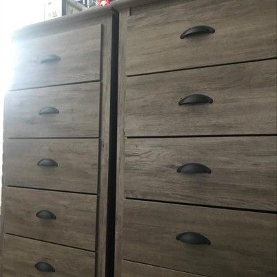 This is the worst dresser I have ever purchased! I’m dissapointed because I was going by the reviews and I thought it would be better quality. The dresser had chips and broken wood in several places. The sliding rail has wheels that came broken in pieces. My husband said it was heavy as it is and such an inconvenience to drag it to a store for a return. The fact that it’s poor quality and came broken is disappointing.