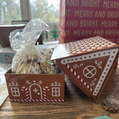 Such a cute gingerbread tin! Great size, sturdy, and perfect for gifting treats. Looks even better in person. I used it as part of a holiday gift, and it made everything look so much more special and festive. Great quality and the perfect size for treats or small goodies
