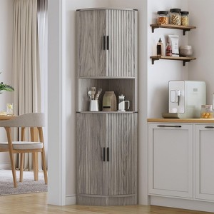 Tall Corner Storage Cabinet, Fluted Hutch Cupboard Pantry Cabinet