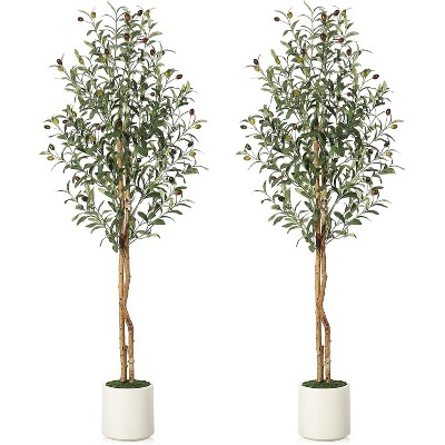 Tall Faux Olive Tree,5ft(60in) Olive Trees Artificial Indoor with White Planter and Green Fake Moss for Home Office Living Room
