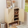 Tall Fluted Shoe Cabinet with Doors, Modern 5-Tier Storage Organizer with Adjustable Shelves, Freestanding for Entryway, Natural Oak