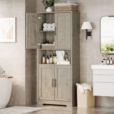 Tall Storage Cabinet, Kitchen Pantry Cabinet with Doors and Adjustable Shelves, Rustic Wooden Cupboard for Dining Room, Living Room,Gray