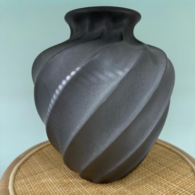 [This review was collected as part of a promotion.] I love the shape and the style of this vase and the quality is wonderful. I’m a little iffy on the color. The color is not a true black and I was looking for a true black you can see in the pictures. It’s absolutely gorgeous, but it’s just not exactly what I was looking for because it’s not a true black and almost has like a shimmery silver look to it.