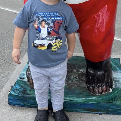 Super cute and made well doesn't seem like the design will wear off anytime soon even with how hard my son is with clothes. If you have a 2 and a half year old you know. He obviously has not seen the movie when he says he wants his Ricky Bobby shirt I know what kind of day it will be. Spider monkey jacked up on mountain dew chaos time.