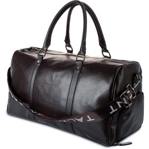 Talmont 17.7″ Premium Eco-Leather Gym Duffel Bag with Shoe Compartment – Weekender Travel Overnight Bag for Men - Black