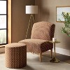 Bring classic style and convenient comfort to your living space with this Tambor Upholstered Ottoman from Threshold™. Supported by a wooden frame, this round ottoman features cotton upholstery with an extra layer of padding for a comfortable seating experience. Designed for multi-purpose use, this portable ottoman is ideal for use as a footrest or extra seating.