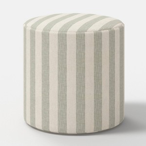 Bring classic style and convenient comfort to your living space with this Tambor Upholstered Ottoman from Threshold™. Supported by a wooden frame, this round ottoman features cotton upholstery with an extra layer of padding for a comfortable seating experience. Designed for multi-purpose use, this portable ottoman is ideal for use as a footrest or extra seating.