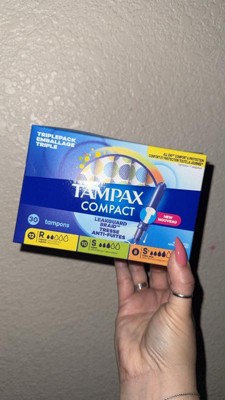 Get up to 100% leak free protection with Tampax Compact Tampons- designed to be compact and discreet, providing convenient period protection on the go. With Tampax Compact, you can get the same incredible all day* comfort and protection as with Tampax Pearl tampons - but now in a compact extendable applicator (*up to 8hrs). Tampax Compact tampons have a LeakGuard Braid to help stop leaks before they happen. Protection you can count on is as easy as 1-2-3 with Tampax Compact. Step 1: Pull out the Pusher. Step 2: Click it into Place. Step 3: Push to insert. Plus, Tampax Tampons are made with body safe** ingredients. Choose from three different absorbencies to match your changing flow. Leaking? Go up an absorbency. Uncomfortable to remove? Go down an absorbency. Tampax Compact Tampons have a smooth comfort layer for easy removal, even on your light days. Tampax Tampons are made without perfume. Tampax products are OEKO TEX standard 100 certified, meaning they are tested for up to 1,000 harmful substances (Certificate #24.HUS.14474). Ready to ditch the leaks? Get incredible protection with Tampax, the #1 tampon brand recommended by U.S. Gynecologist (based on 2024 survey). Discover your perfect flow combo and get the protection you need. **All materials meet FDA Medical Device biocompatibility criteria and are safe when used as intended. HOW TO INSERT A TAMPON: Slowly insert the tampon applicator from the tip, all the way to the grip, then push the pusher. After you've pushed the pusher in all the way, pull the applicator out. How to remove a tampon: You'll use your thumb and finger to grip the string and pull it slowly out. Properly dispose of your tampon in the trash.