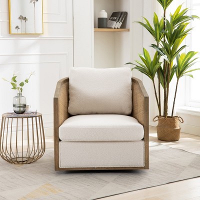 Light Beige Corduroy Fabric, Comfortable Single Accent Chair Deep Seat Sofa With One Pillow