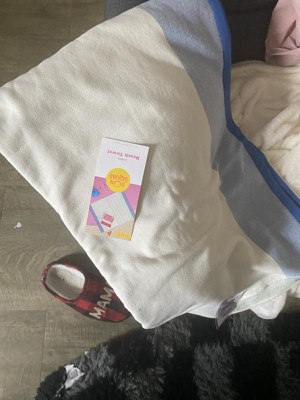 This towel is great. It is huge and is going to be so wonderful to use this summer when it is warm enough for swimming and the lake. It has a smoother texture on the outside that isn’t going to hold onto sand and soft, fluffy towel texture on the inside. Love it!