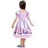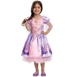 If your toddler loves Rapunzel and already has EVERY dress, then she will be so overjoyed when she sees this one! This deluxe dress features beautiful pictures of Rapunzel's tower and the floating lanterns giving it a hand painted look. Everyone will have their eyes on this gorgeous dress! It's perfect for birthdays, Halloween, and dress up play time!